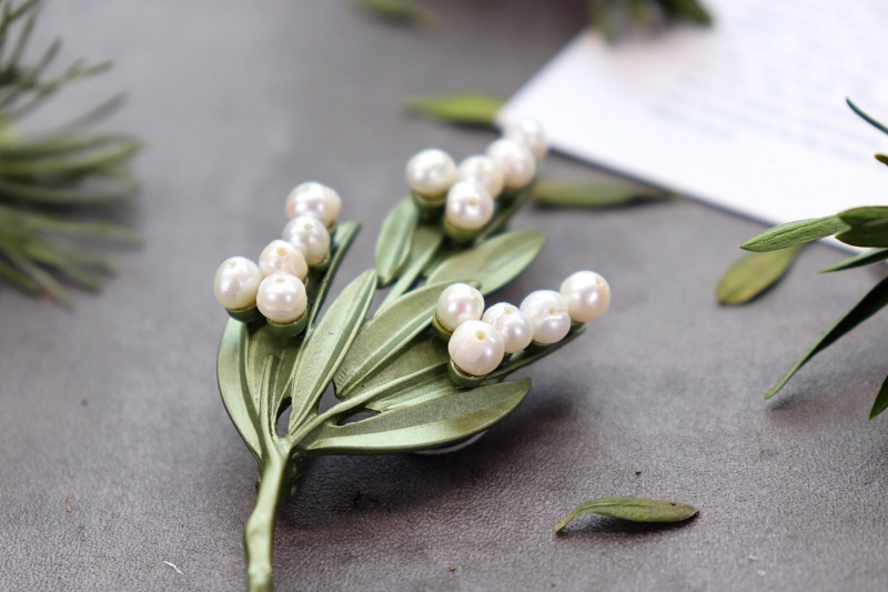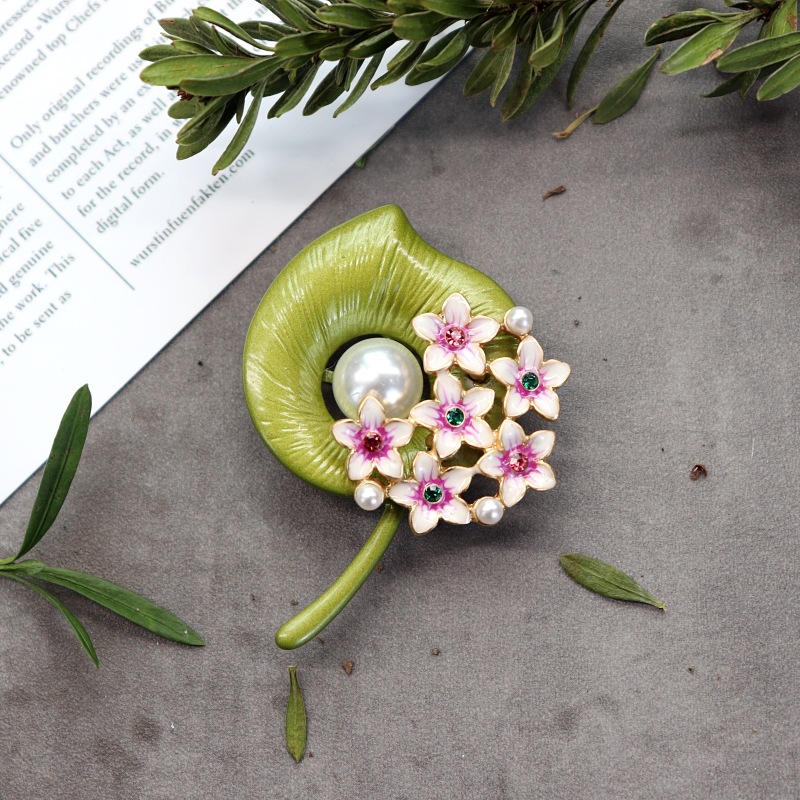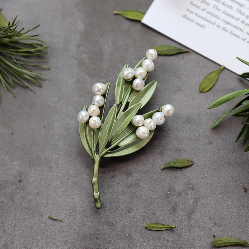 Retro Mori Style Plant Elegant Graceful Pearl Brooch